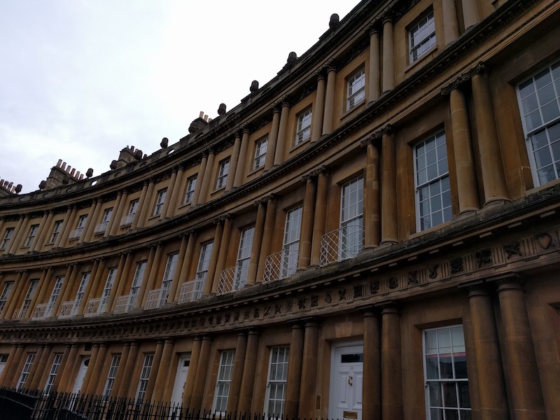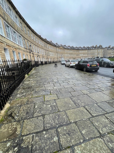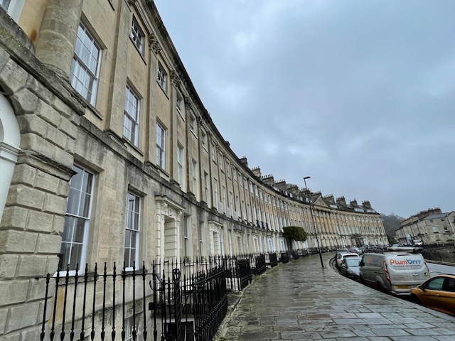 Weatherwise, the second day wasn’t the best with rain and dull grey skies, but we weren’t put off from our plan of walking round Bath’s Crescents. We started at Royal Crescent with its fabulous views towards Royal Victoria Park. Consisting of thirty Grade 1 listed houses, it was designed by John Wood the Younger and built between 1767-1775.