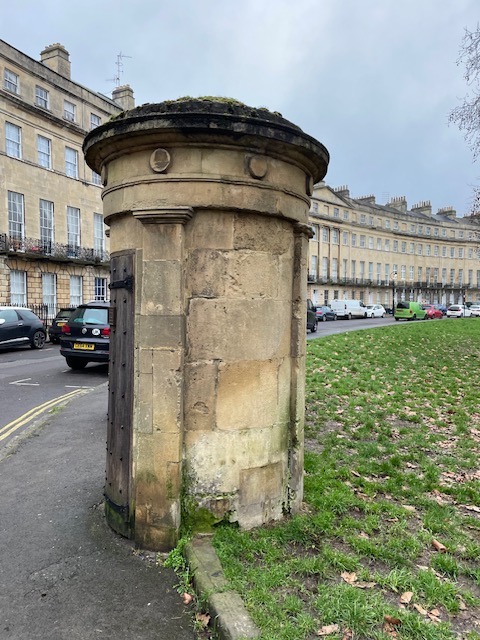 Across from the crescent is a large open, green space which was originally the formal garden for residents; here I was excited to find a watchman’s sentry box dating from 1810.