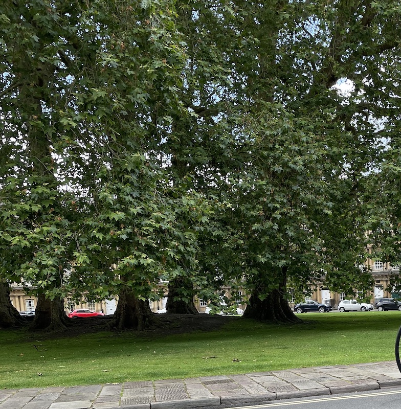 We didn’t include The Circus in our tour because we’ve walked through there many times. Said to be based on Stonehenge, The Circus was designed by John Wood the Elder and built between 1754-1768. It is formed of townhouses in three segments all of equal length. There is a lawn in the centre with five very large plane trees.