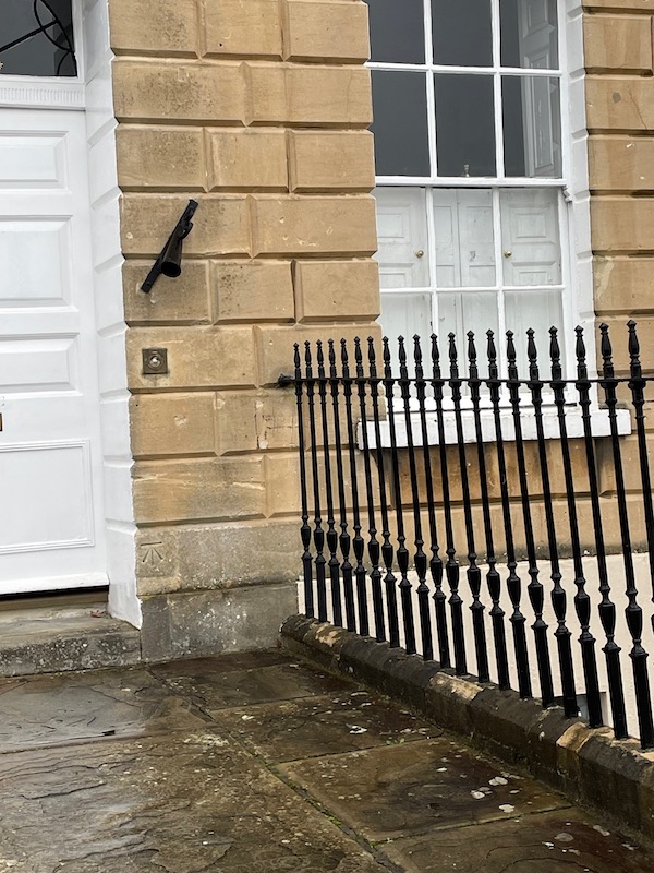 It too, has stunning views across the city and some nice Regency architectural features like this link extinguisher to the right of this front door. These were used to put out the torch or link carried by the link boy to illuminate the way home (no street lighting here in the early 1800s).